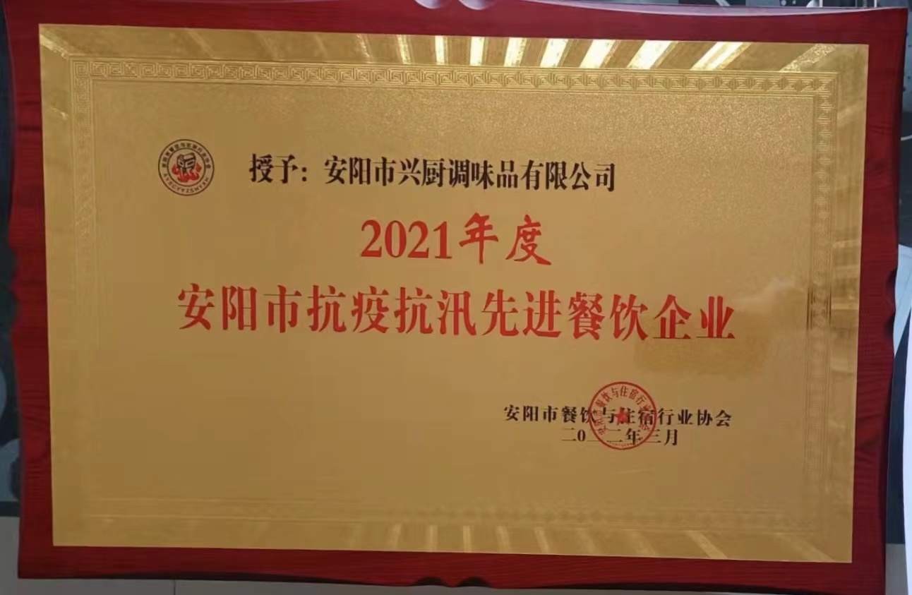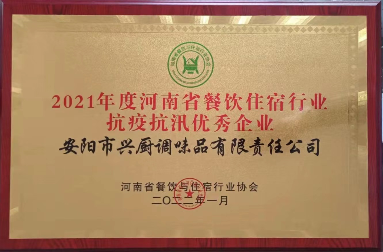 ? ? ? ? ?2022年3月9日,我司獲得"2021年度河南省餐飲住宿行業(yè)抗疫抗汛優(yōu) 秀企業(yè)"稱號(hào)